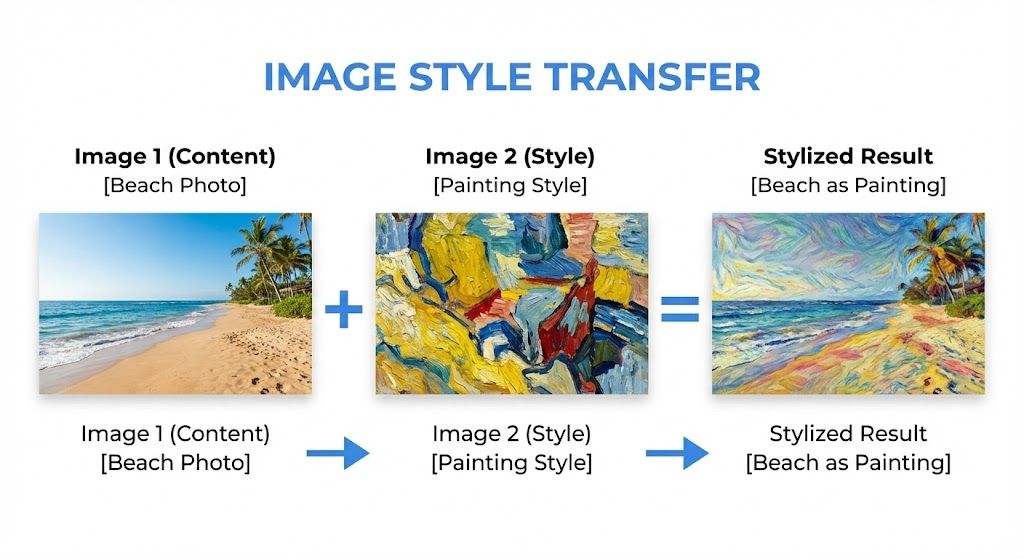 AI can combine two images – taking the content from one image and the style from another to create unique artwork.