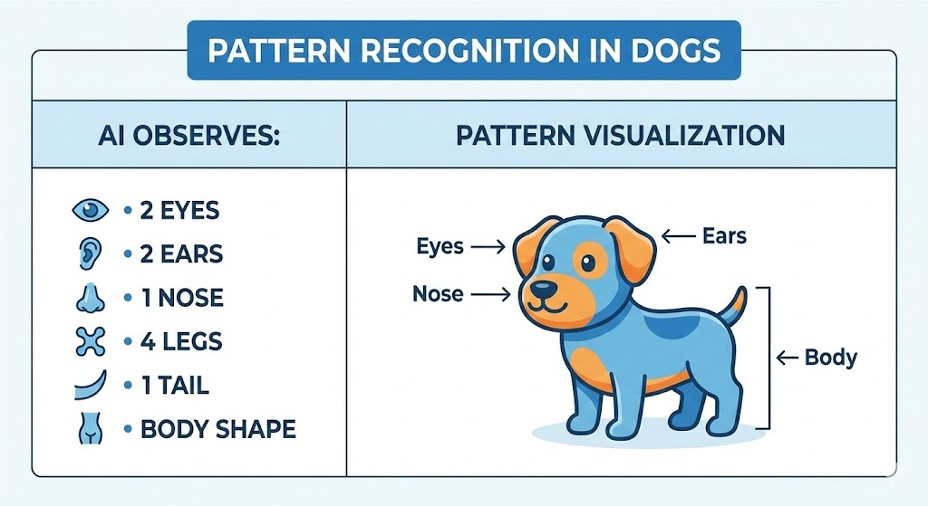 - They identify patterns in images (number of eyes, ears, nose, limbs, tail length, body shape)
