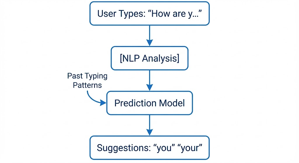 Autocomplete features use NLP to complete words you’re writing or predict the next word based on your typing habits.