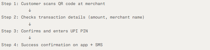 A QR (Quick Response) code is a type of barcode. UPI makes paying via QR codes very convenient: