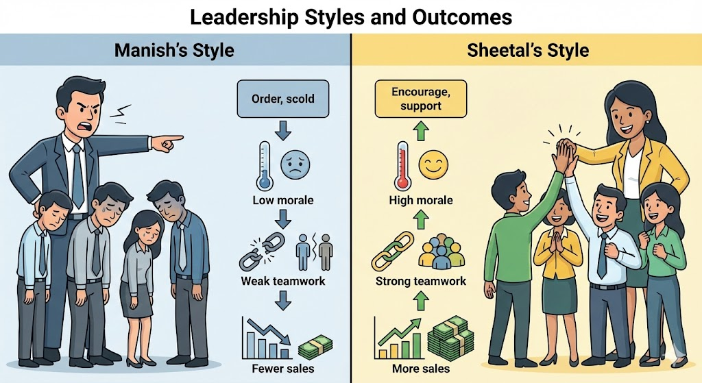 Thus, Sheetal’s stronger interpersonal communication and team spirit led to better performance and more sales.