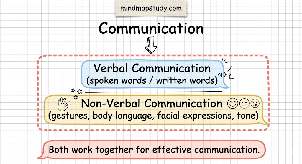 Non-verbal communication, on the other hand, expresses ideas through gestures, body movement, facial expressions, and tone of voice — without using words.